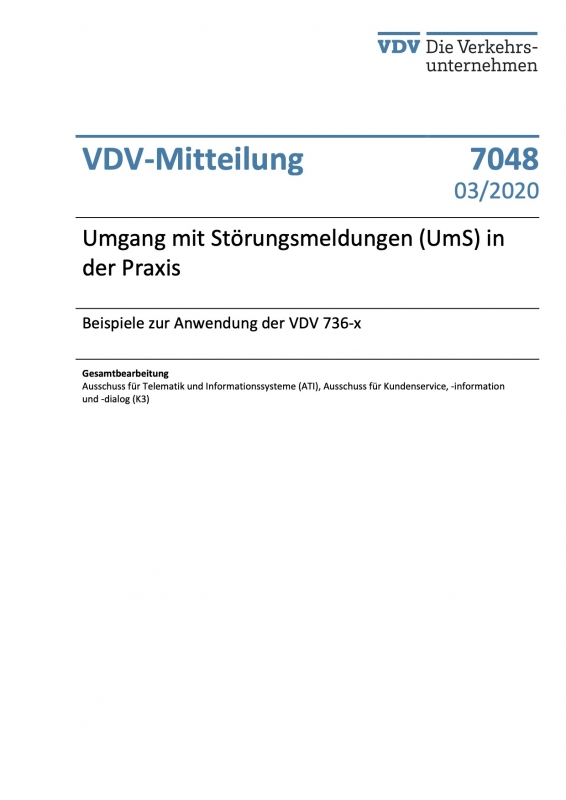VDV-Mitteilung 7048 Umgang mit Störungsmeldungen (UmS) in der Praxis