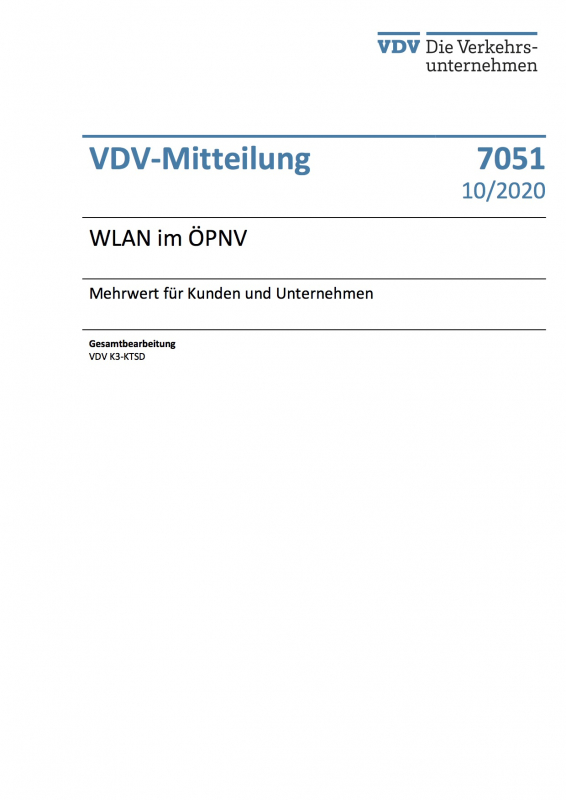 VDV-Mitteilung 7051 WLAN im ÖPNV – Mehrwert für Kunden und Unternehmen [eBook]
