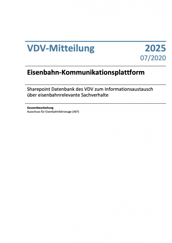 VDV-Mitteilung 2025 Eisenbahn-Kommunikationsplattform [Print]