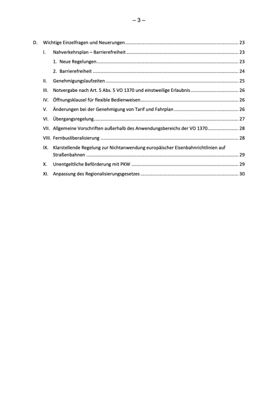 Am 1. Januar 2013 ist nach jahrelanger Diskussion um die Anpassung des deutschen Rechts an die Verordnung (EG) Nr. 1370/2007 (im Folgenden „VO 1370“ genannt) ein novelliertes Personenbeförderungsgesetz (PBefG) in Kraft getreten. Nach der politi-schen Diskussion steht nunmehr die praktische Anwendung im Vordergrund. Die neue VDV-Mitteilung 9056 behandelt auf 29 Seiten die wichtigsten Aspekte der Novelle. Nach einer kurzen Einführung werden vier zentrale Begriffe der Novelle erläutert: - Neue Definition der Eigenwirtschaftlichkeit - Öffentlicher Dienstleistungsauftrag - Ausschließliches Recht - Zuständige Behörde