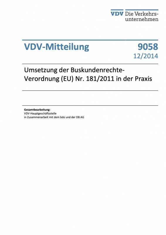 VDV-NR. 9058 Umsetzung der Buskundenrechteverordnung (EU) Nr. 181/2011 in der Praxis
