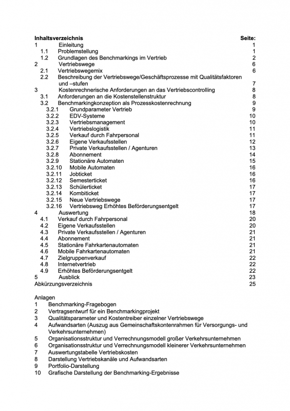 Der Unterausschuss Vertriebskosten des allgemeinen Ausschusses für Preisbildung und Vertrieb hat mit der neu erschienen VDV-Mitteilung ein Praxisleitfaden für einen aktiven Benchmarking-Prozess für den Vertrieb erstellt und im Rahmen der Entwicklung auch erste interessante Ergebnisse ermittelt. Zentrale Zielsetzung dieser VDV-Mitteilung ist es, den Mitgliedsbetrieben die Grundlagen für Vergleiche im Vertriebskostenbereich zu liefern und über Stärken-Schwächen-Analysen eine Orientierung an best-practice Unternehmen zu ermöglichen. Die VDV-Mitteilung soll, ergänzt durch die Anlagen, nicht nur den Vertrieb analytisch betrachten, sondern auch eine praktische Handreichung zur Durchführung von Benchmarking-Projekten im Vertrieb darstellen. Die Grundlage dafür bildet eine detaillierte Beschreibung der einzelnen Vertriebskanäle, wobei neben den heute gängigen auch neue, künftige Vertriebsmöglichkeiten dargestellt werden. Von grundlegender Bedeutung in dieser Untersuchungsphase ist die Definition der jeweiligen Qualitätsstufen, weil nur so ein unternehmensübergreifender Vergleich gewährleistet werden kann.