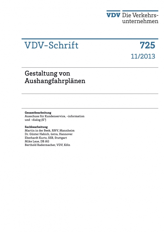 VDV-Schrift 725 Gestaltung von Aushangfahrplänen [eBook im pdf-Format]