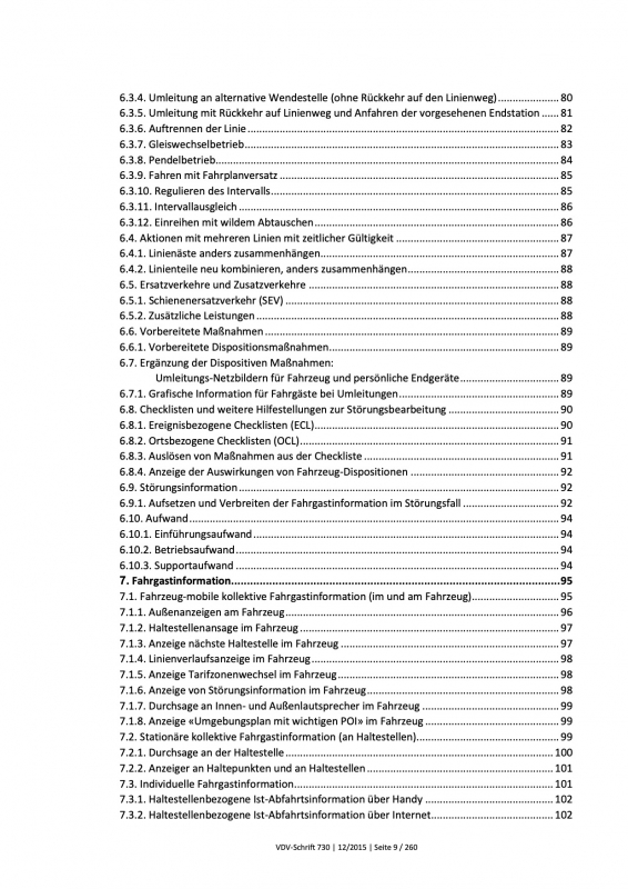 Der Begriff „itcs“ hat den früheren Begriff „RBL“ (Rechnergesteuertes Betriebsleitsystem) abgelöst. Das RBL konzentrierte sich anfänglich auf die Kernfunktionen Fahrzeugüberwachung, Organisation der Gesprächsauf-schaltungen und Durchsagen, die Ansteuerung von Abfahrtsanzeigern zur Fahrgastinformation sowie statistische Auswertungen der Fahrleistungen. Der Funktionsumfang eines itcs geht weit darüber hinaus und die Schnittstellen mit anderen Systemen, die Betriebsmeldungen, die bessere Fahrgastinformation sowie die systematischen Datenauswertungen ergänzen die ursprüngliche Funktionalität. Das itcs ermöglicht dabei — den Verkehrsunternehmen leistungsfähiger und fahrplantreuer zu arbeiten, — den Fahrgästen eine umfassendere Fahrgastinformation bereitzustellen, — Reiseinformationssysteme mit genauerer Information zu versorgen sowie — Anschlüsse effizient zu sichern. Ein itcs bedeutet aber auch eine immer größer werdende Menge von Arbeiten für die Datenversorgung und den Unterhalt, sowie ein notwendig werdender Kompetenz-Aufbau bei den Nutzern und Unterhaltsverantwortlichen. Die vorliegende ergänzte VDV Schrift 730 in der Version 1.1 hilft hier den Verkehrsunternehmen Ordnung in diese Vielfalt der Funktionen und Anforderungen zu bringen und somit als Basis für die Ausschreibung und Abnahme eines itcs dienen. Hierzu werden von der VDV Schrift 730 umfänglich die itcs-Funktionen in den Bereichen — Ortung, Soll-/Ist-Vergleich und Prognose, Fahrgastinformation — Betriebssteuerung, Störungs- und Anschlussmanagement — Bordrechner und Systemeigenschaften (nun mit VDV 301 IBIS-IP) — Datenmanagement, Datenaufzeichnungen und Informations-Reporting — Offline- und Online-Datenschnittstellen und die Kopplung von Systeme — Sprach- und Datenkommunikation per Funk beschrieben. Die Anforderungen an ein itcs sind durch die jeweiligen örtlichen Einsatzbedingungen unterschiedlich, die VDV Schrift 730 kategorisiert daher die Funktionen nach unterschiedlichen Verkehrsräumen, wie z. B. Ballungsräum-en (Advanced), Städten (Standard) und regionalen Gebieten (Light). Die VDV Schrift 730 V1.1 unterstützt durch die Standardisierung der itcs-Funktionalitäten die Verkehrsunter-nehmen bei der Beschreibung des Leistungsumfanges wesentlich und ermöglicht hierüber eine effizientere Ausschreibungs- und Abnahmephase.