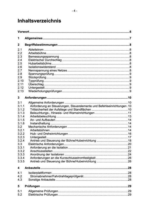 VDV-Schrift 580 [Print-Version] Isolierte Hubarbeitsbühnen für Arbeiten an Oberleitungsanlagen bis DC 1500 V Die VDV-Schrift 580 behandelt die elektrischen Anforderungen, die an die Konstruktion und den Betrieb der auf Fahrzeugen montierten Hubarbeitsbühnen gestellt werden. In diesem Zusammenhang beschreibt sie auf Basis der Norm DIN VDE 0682-742 die besonderen Anforderungen an Hubarbeitsbühnen für Arbeiten an Oberleitungen von Straßen- und Stadtbahnen. Diese Schrift gilt für Hubarbeitsbühnen mit Standortisolierung, die für Arbeiten an und in der Nähe von unter Spannung stehenden Teilen der Oberleitungsanlage bis zu einer Nennspannung von AC 1000 V und DC 1500 V – auch bei Regen – vorgesehen sind. Die mechanischen Prüfungen erfolgen nach DIN EN 280 und sind nicht Gegenstand dieser VDV-Schrift.