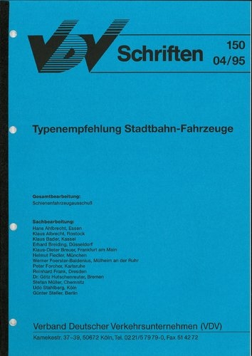 VDV-Schrift 150 Typenempfehlung - Stadtbahnfahrzeuge [eBook im pdf-Format]