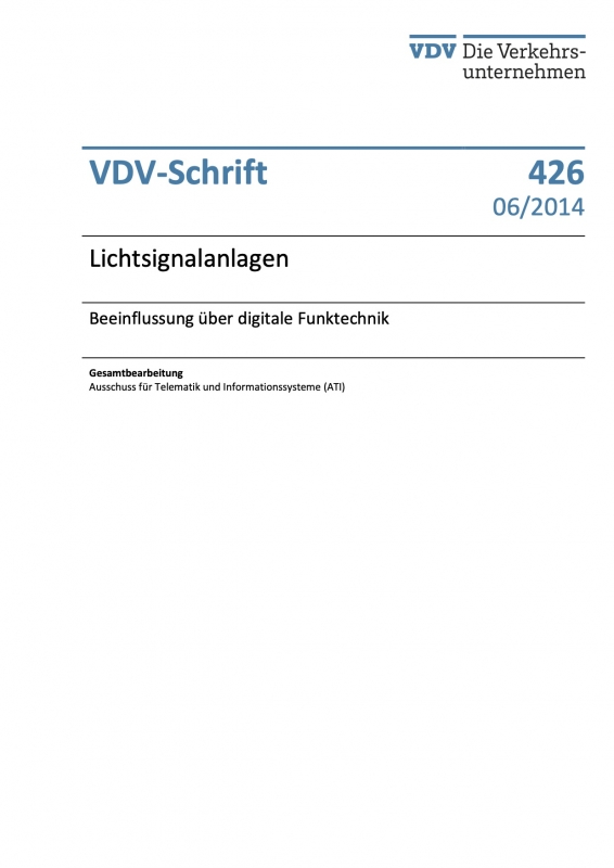 VDV-Schrift 426 Lichtsignalanlagen Beeinflussen über digitale Funktechnik