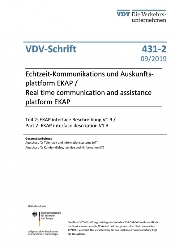 VDV-Nr. 431-2 Echtzeit Kommunikation- und Auskunftsplattform EKAP / Real time communication and assistance platform EKAP [eBook im pdf-Format]