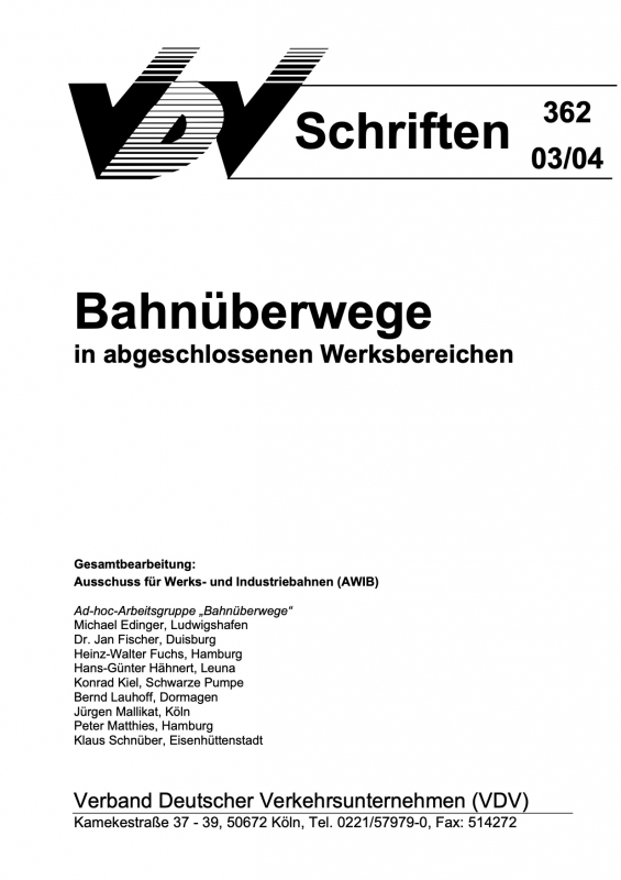 VDV-Schrift 362 Bahnüberwege in abgeschlossenen Werksbereichen