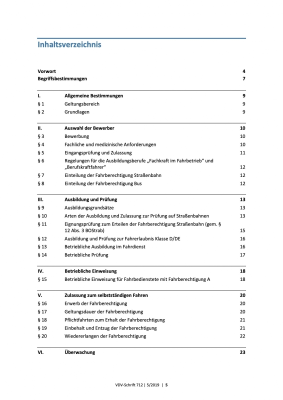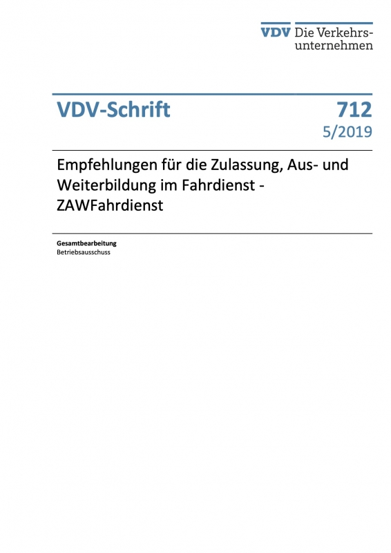VDV-Schrift 712 Empfehlung für die Zulassung, Aus- und Weiterbildung im Fahrdienst - ZAW Fahrdienst